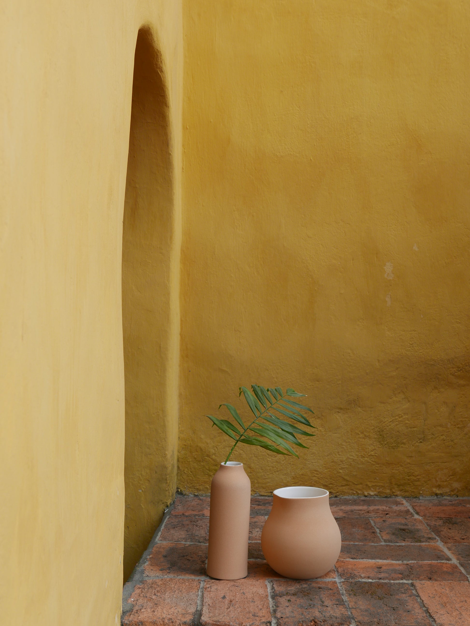 Handcrafted in Mexico, this Terracotta Urn Vase features a warm matte terracotta exterior and a smooth white-glazed interior. Its tall urn-style silhouette adds an elegant minimalist presence to shelves, dining tables, and consoles. The exterior engobe finish gives the vase a soft, refined texture that contrasts beautifully with the glossy interior.